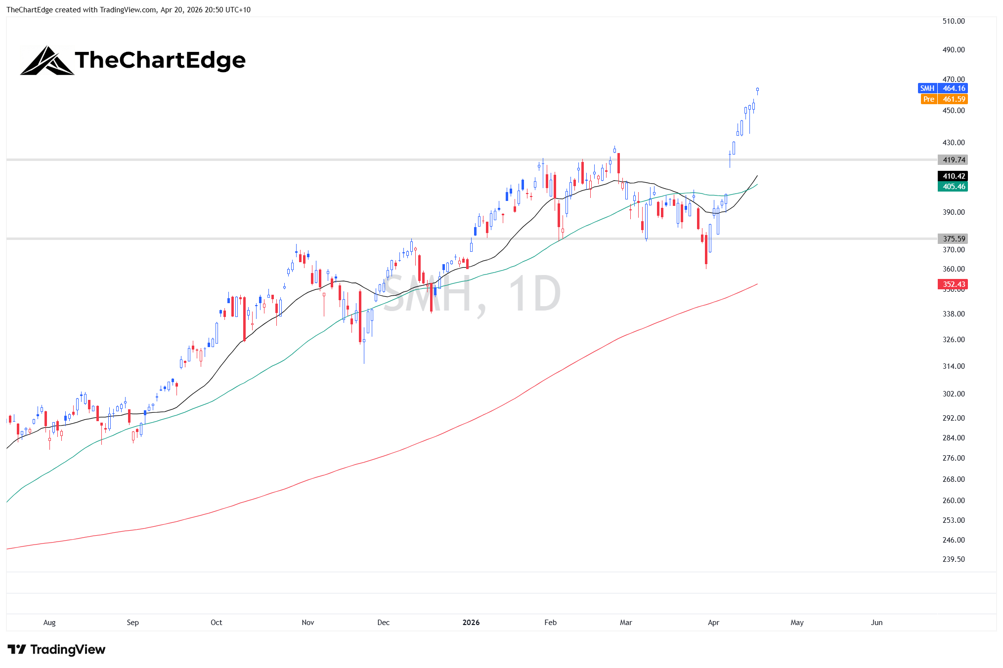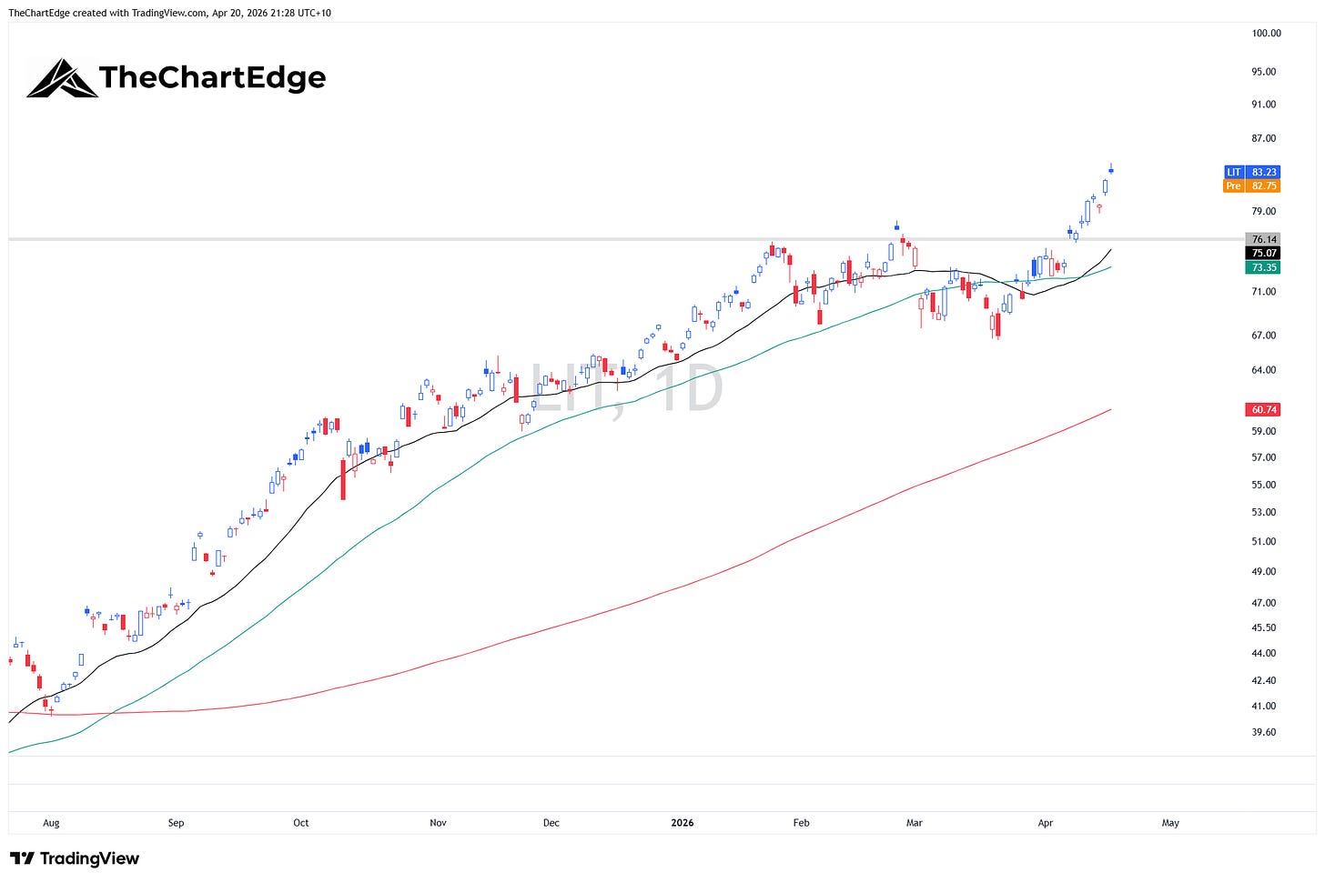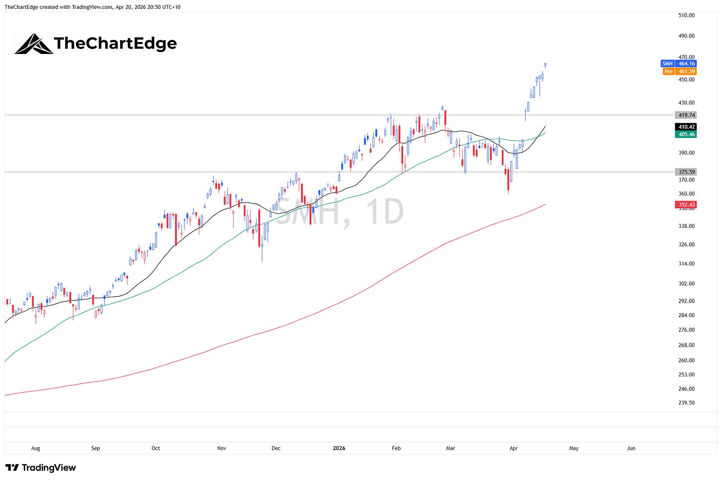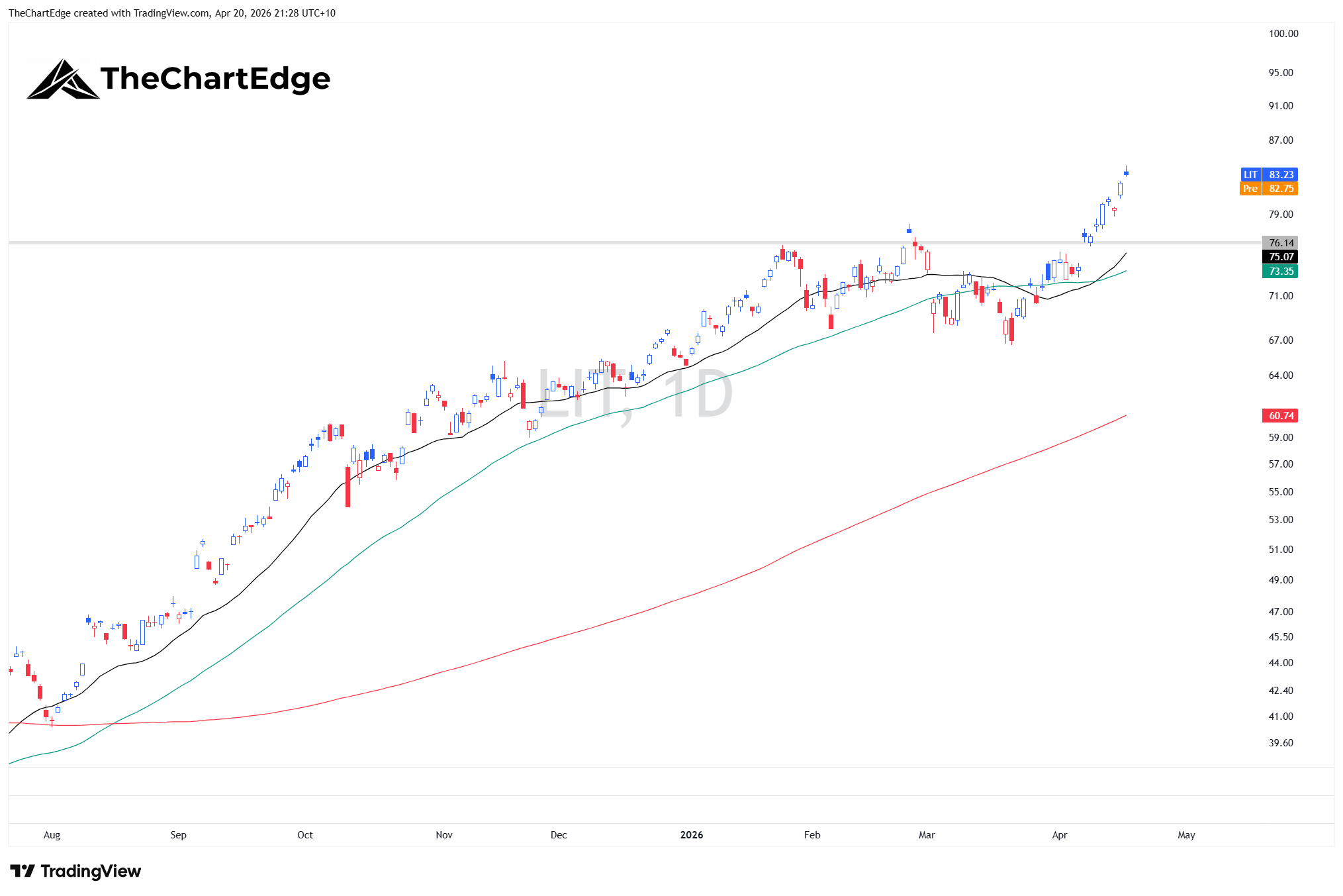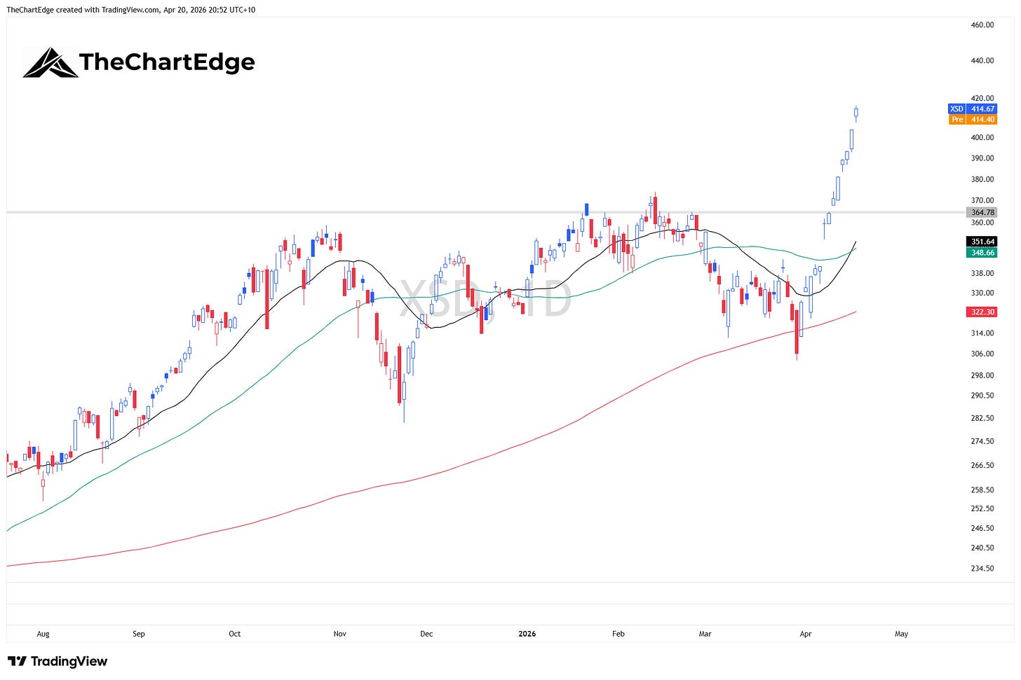 Most leading names are extended after the recent big move. But AI names are where the strongest momentum in the market lives, and these are the names I want on my shopping list for pullbacks into the SMAs, or if they base out and the moving averages catch up. I will post an AI deep-dive with specific names later this week.