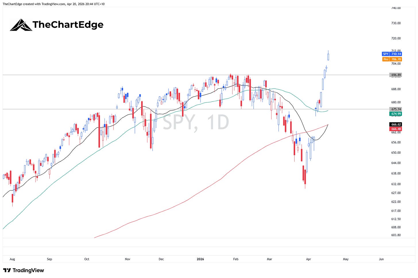 The six US indices we track are all in what I’d call a Recovering Uptrend - price is above all key moving averages, but the moving averages themselves haven’t sorted into the proper bullish sequence yet. The 20-day was dragged down by the recent correction and needs a bit more time to cross above the 50-day. If price holds around these levels, we could see that happen within a week or two.